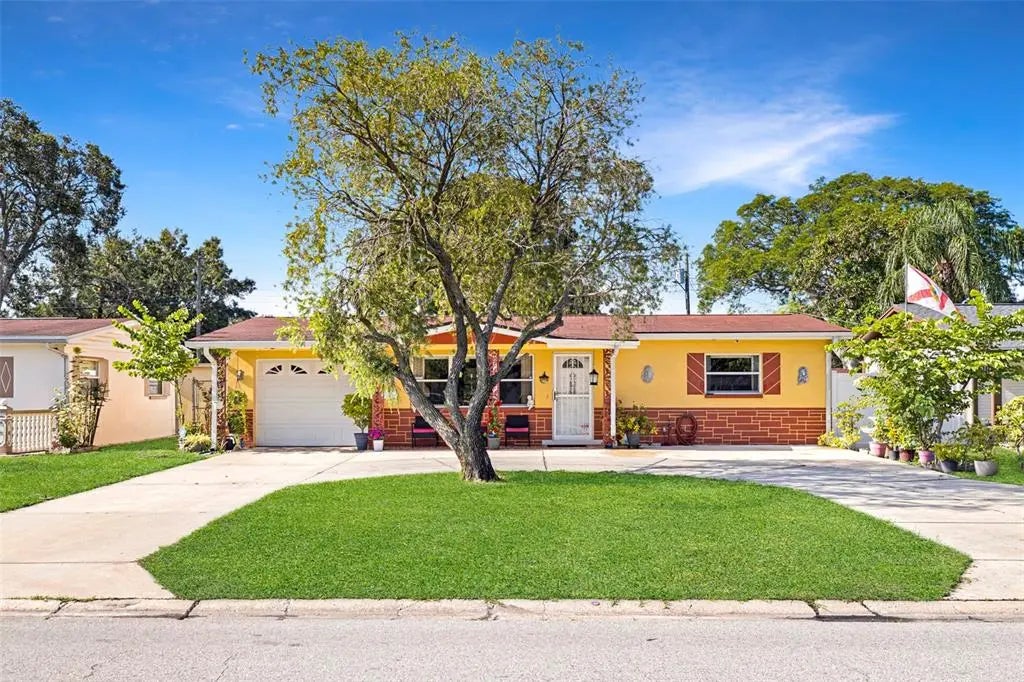 Step into a home that’s been lovingly cared for by the SAME OWNER for OVER 25 YEARS, offering a WARM, WELCOMING feel from the moment you pull up. Sitting on a SPACIOUS LOT in CENTRAL PINELLAS PARK, this SOLID BLOCK 2-BEDROOM, 1-BATH home features a CIRCULAR DRIVEWAY, 1-CAR GARAGE, and an INCREDIBLE BACKYARD setup you don’t always find in this PRICE RANGE. Inside, you’ll find CHARMING ORIGINAL TOUCHES like SCALLOPED KITCHEN CABINETRY alongside KEY UPDATES, including a 2017 ROOF, BRAND NEW 2024 WATER HEATER AND WATER SOFTENER, and a SOLAR-HEATED SALTWATER POOL — perfect for RELAXING or ENTERTAINING YEAR-ROUND. The OPEN LIVING AND DINING SPACES flow easily, giving you the chance to MOVE RIGHT IN or UPDATE TO YOUR TASTE over time. Whether you’re a FIRST-TIME BUYER looking for something with CHARACTER, or an INVESTOR seeking a WELL-MAINTAINED PROPERTY WITH GREAT BONES, this home DELIVERS FLEXIBILITY. Plus, you’re just 10–20 MINUTES from GULF BEACHES, DOWNTOWN ST. PETE, or TAMPA. EASY LIVING, a FANTASTIC OUTDOOR SETUP, and a CENTRAL LOCATION — this one CHECKS ALL THE BOXES.